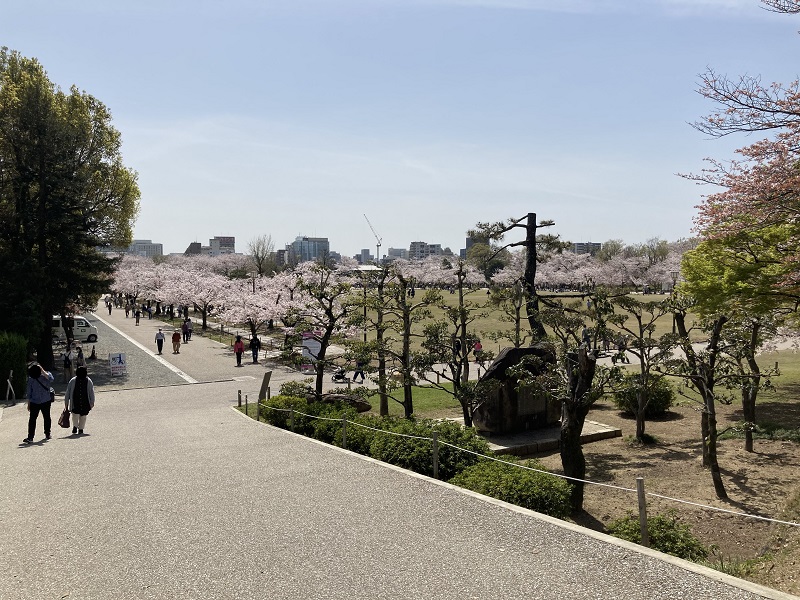 こちらが、大手門を入ったところです。天守がまっすぐに見えるので、お城を背景に撮影する人が多い、人気のスポットです。
