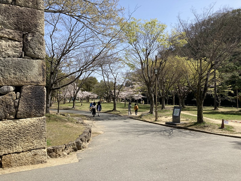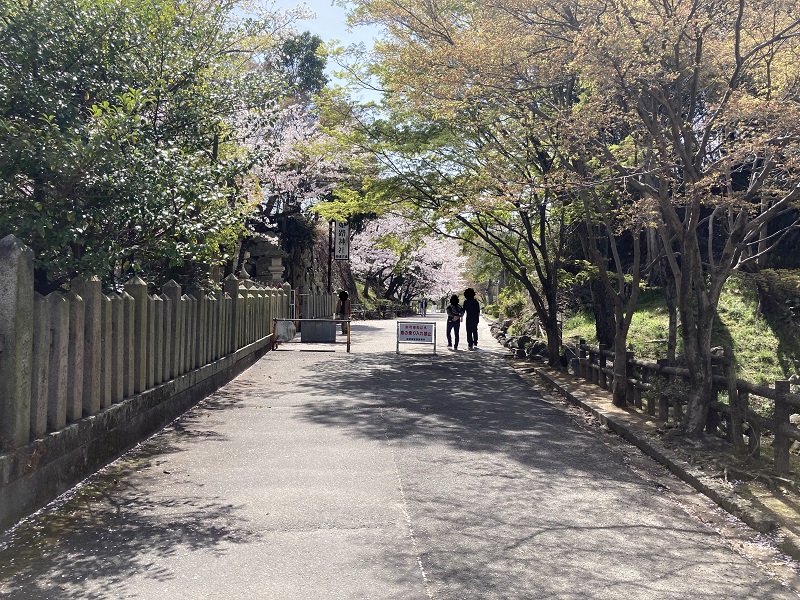 こちらが広場の西側を、入城口へ進んでいったところです。両側が桜並木になっています。