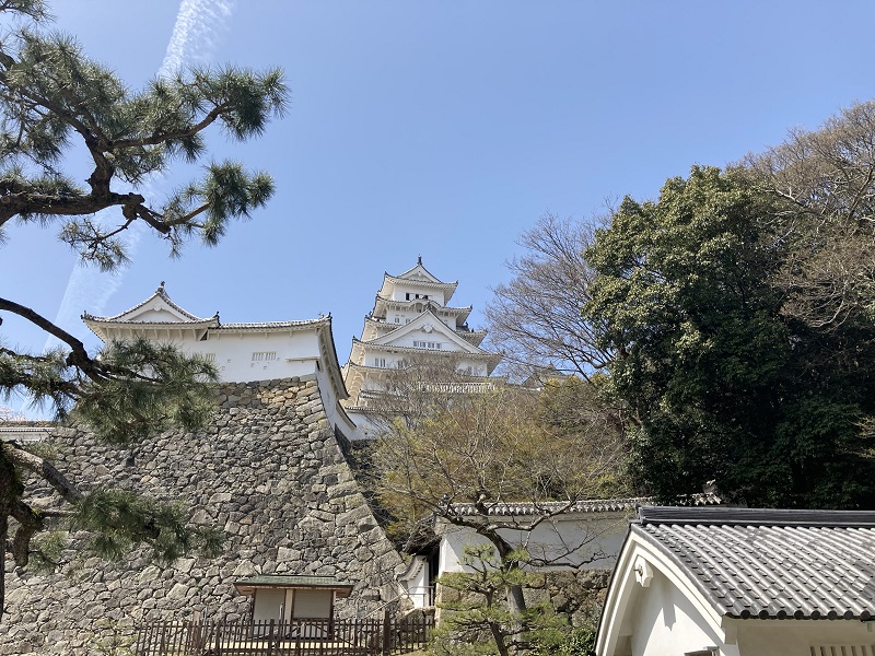 神社を通り過ぎると、姫路城の天守が見えてきます。