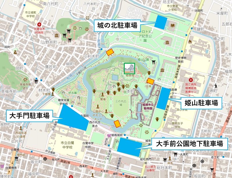 姫路城の周辺には、姫路市の公営パーキングが、いくつかあります。