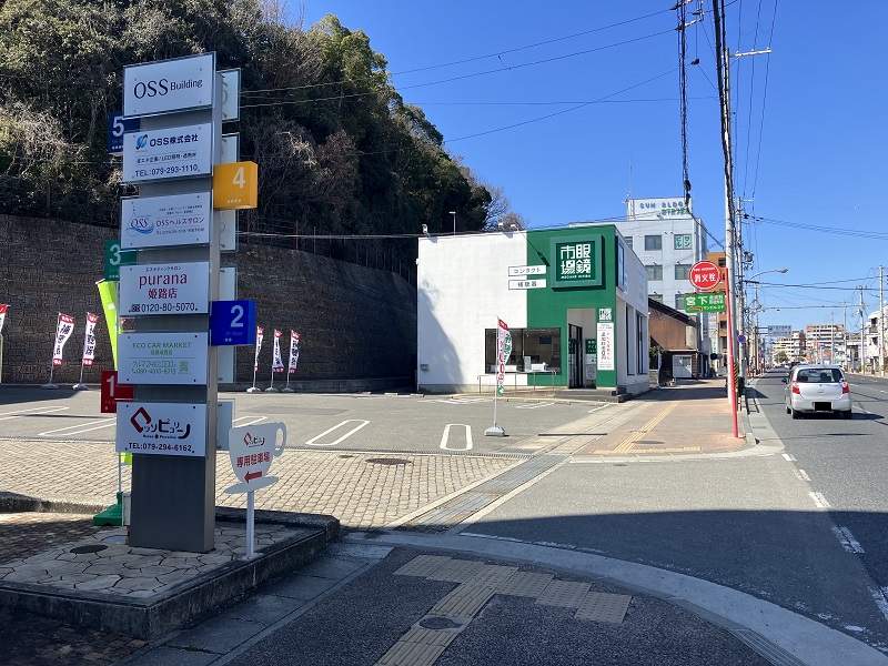 まっすぐに進んで行くと、眼鏡屋さんが見えるので、その手前を曲がると公園があります。