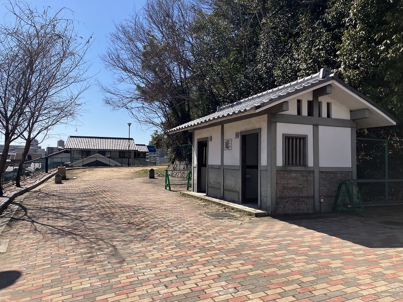 こちらが、景福寺公園の入ったところです。入り口付近に、和風の公衆トイレがあります。