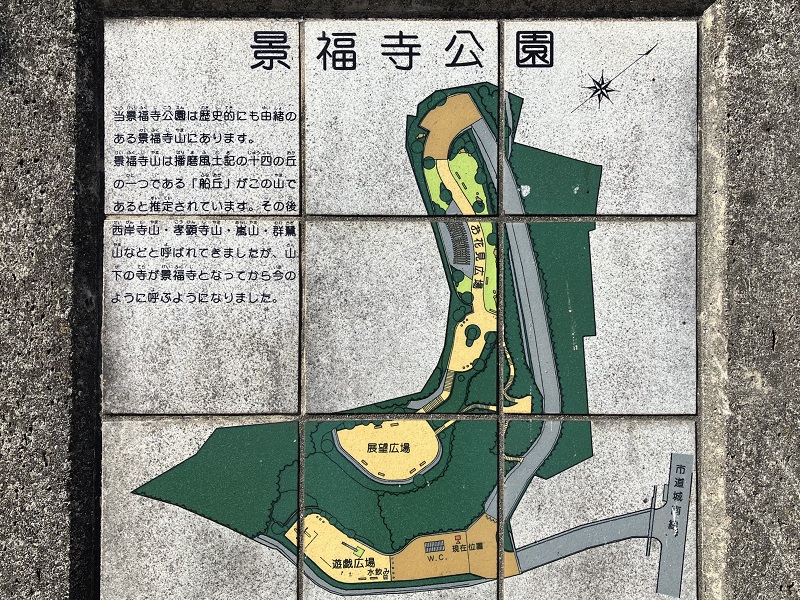 景福寺公園(姫路市)と姫路城の位置