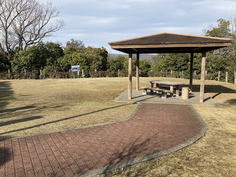 山頂の芝生広場から、東側に一段降りたところにも、休憩所がありました。
