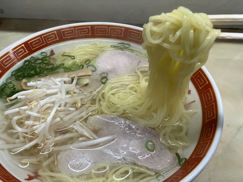 細めのストレート麺はやわらかく、スープとの相性も抜群。チャーシュー、もやし、ネギ、メンマと、どこかホッとする定番の組み合わせです。